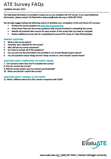 - Consult the ATE Survey FAQ on the EvaluATE website.