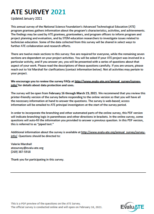 | Download 2021 ATE Survey Preview | 2021 ATE Survey FAQs |